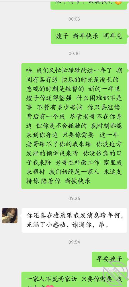 兄弟们 我隐约的觉得嫂子有点放开了 对我说的一些不再那么认真严肃 这是不是一个好的征兆啊 但是我还是不能做一些过分的事 不然肯定会惹来堂嫂的厌恶,昨晚我给嫂子发了一大段话 里面暗藏着一些心思 相信堂嫂能出来 只是她不好意思跟我表明而已 我也希望她对我给她的关心一直默默的藏在心里 大家心照不宣就好 说实话 当我发出那一段话后我心里非常忐忑 各种幻想她给我的回复 可能又是一顿骂和生气 也正因此 导致我昨晚三点左右才睡