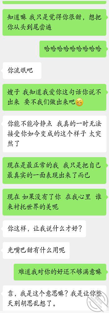 就这样我们就聊起来了 她跟我说的每一句话都让我用情话搔话给挡回去了 最后我借助着我不想脸的态度把她给撩的都有点崩溃无话可说了 她肯定想象不到她能这么无语过 包括我自己都有点意外 堂嫂面对我说的这些刚开始有点责怪生气 可后来对我的连续攻击她也知道这样没啥用了 就颓废了 任我咋说了 哈哈 突然好有成就感,还有 女孩基本好像都喜欢听男人讲一些甜言蜜语 就算知道是假的不可能也愿意听 有没有女的告诉我这是不是真的啊