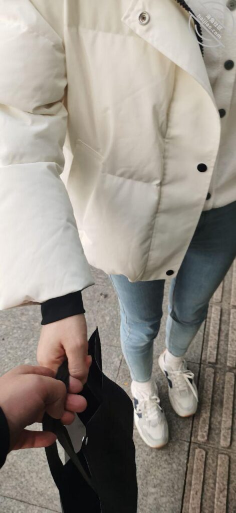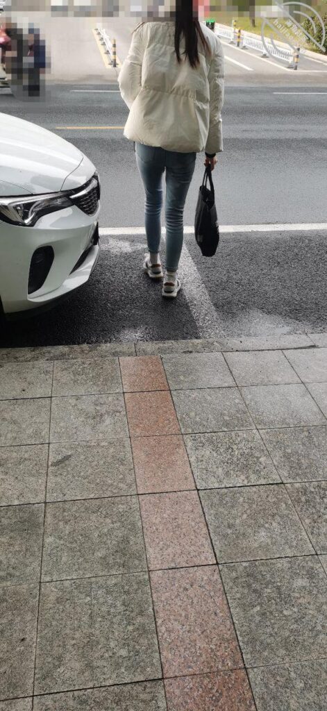 把屁股痕出勒了,看起来很性感,好想摸摸但是在外面摸怕她生气,把女儿送到楼下了