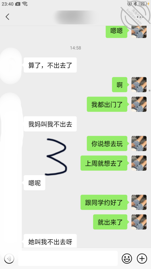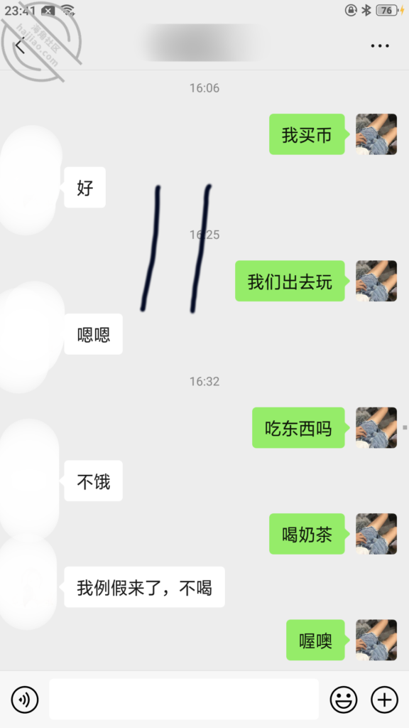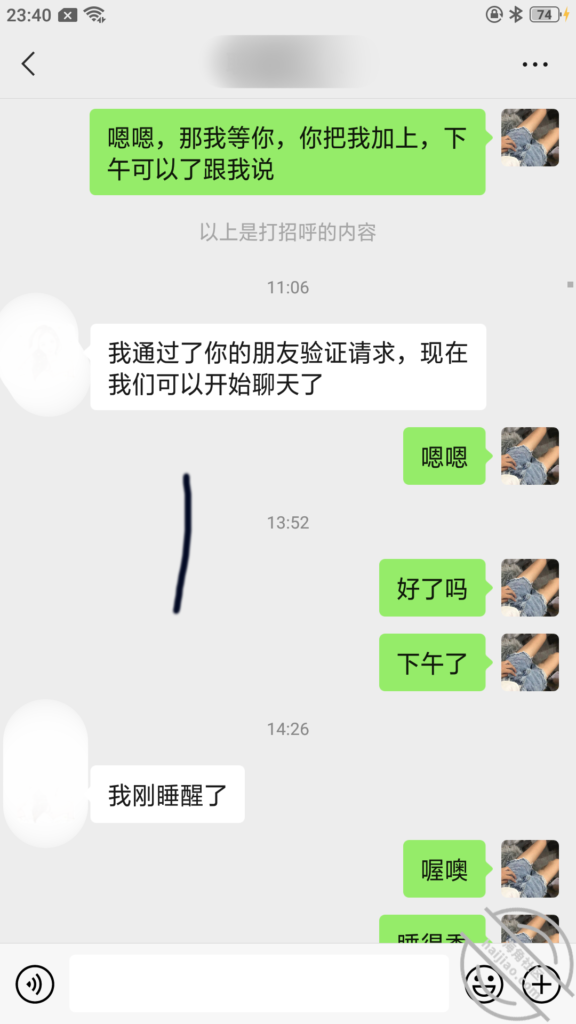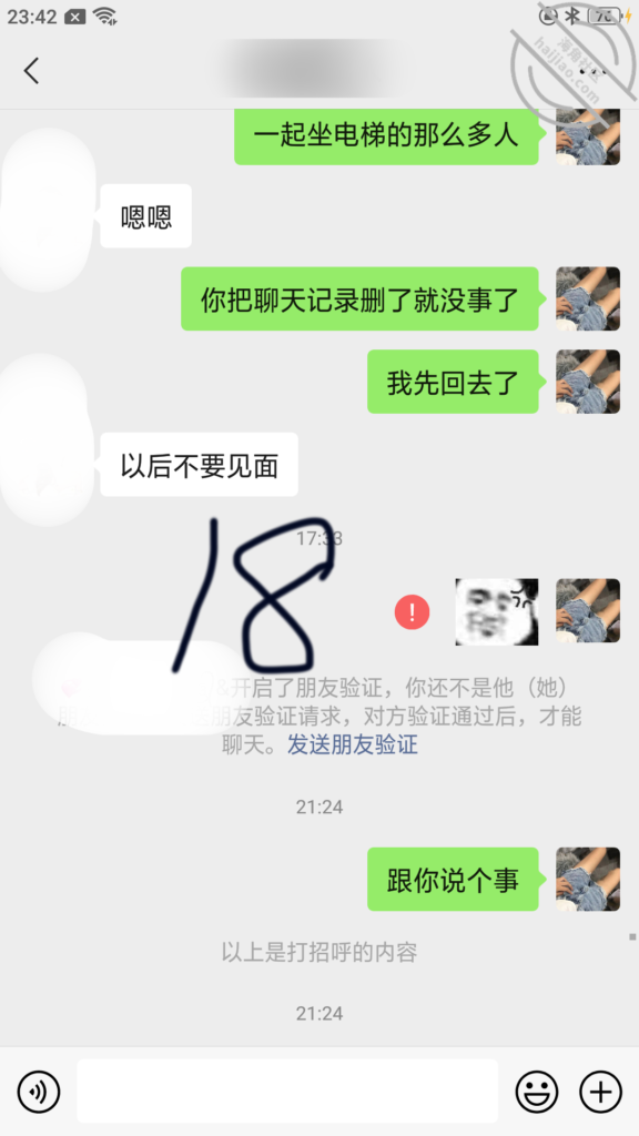 自从上周强上聋儿女孩,送她回家,她又把我删了之后,这一周每天都给她发消息,她有时会回,就这样在好友验证消息那里有一搭没一搭的聊着。