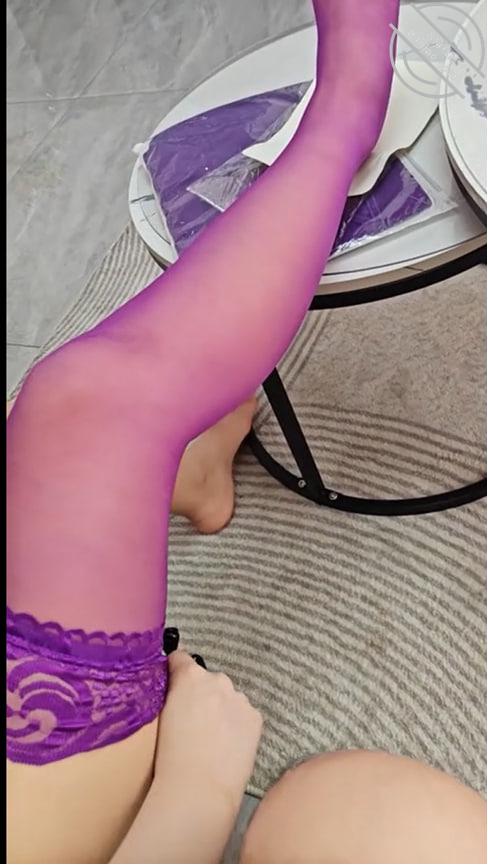 嫂子说紫色很有韵味。之前就给嫂子买了一个很艳丽颜色的丝袜,想着什么时候有时间穿一下,好不容易让嫂子穿上了,但是发现这个丝袜质感不太行,后来就千脆直接找出来一身紫色的衣服和丝袜让嫂子换上了。